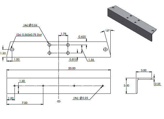 Aluminum tongue support 3"x3"x20" (Double Punch)