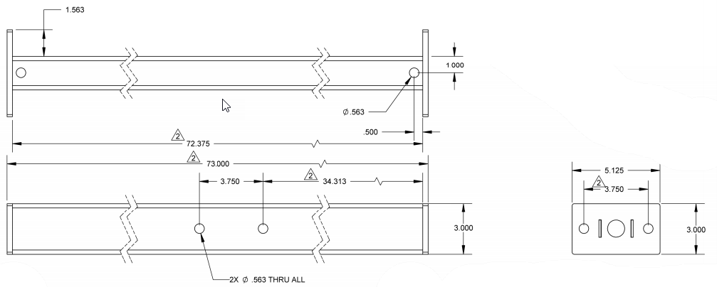 Crossmember 2"x.2.75"x73" Straight
