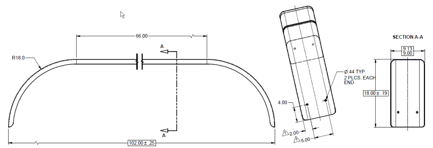 L 102″ x W 9″ x H 18″ .100 material