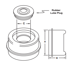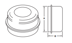 Grease cap specifications A: 2.72″ B: 1.52″ C: 1.18″. Grease cap includes BLACK RUBBER INSERT.